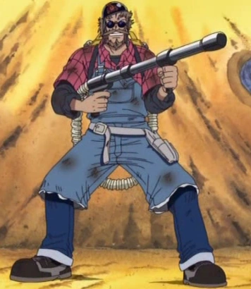 Впервые появился в пустыне, когда Луффи, Эйс и остальные сделали перерыв. Оказалось, что он очень долго охотится на Эйса. Сначала он хотел взорвать его базукой, но страус Скорпиона — Попо чихнул и потушил огонь, поэтому базука не выстрелила. Когда он узнал об этом, он погнался за Попо, но базука упала. Скорпион успел её схватить, но бомба выпала из базуки. В это время под горой, где был Скорпион стоял Луффи. Он схватил бомбу и быстро поднялся наверх. От испуга он чуть не свалился. Затем они поехали на Попо искать Эйса. Он попытался словить его сетью, но сам запутался в ней. Скорпион хотел победить его ядом, но Эйс с одного удара победил его.[1]