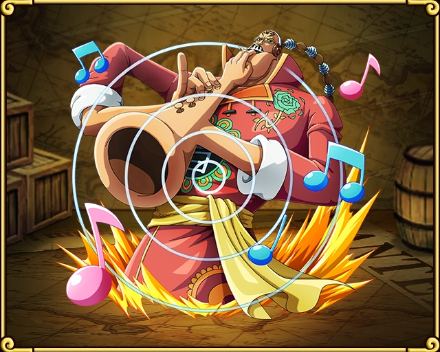 Апу съел Ото Ото но Ми дьявольский плод типа парамеция, что позволяет ему преобразовывать части своего тела в различные музыкальные инструменты, на которых он может играть - например, челюсть в тарелку или рожок, грудь в барабан, зубы в клавиши пианино или руку в саксофон - и эту способность он назвал Tatakau Music (戦う