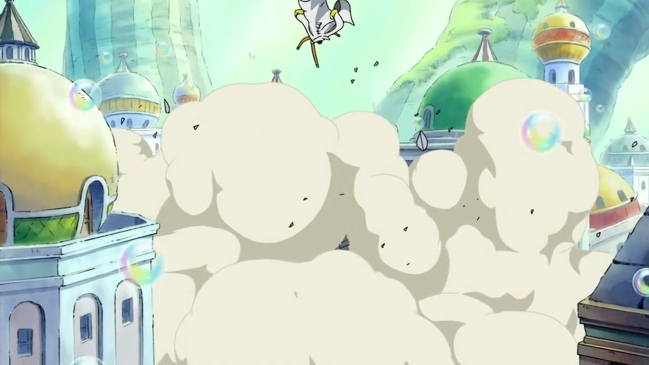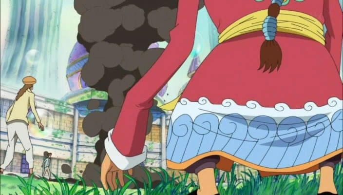 Глава 509 (стр. 17-19) и Эпизод 402, Апу нападает на Кидзару, демонстрируя свои способности дьявольского плода.