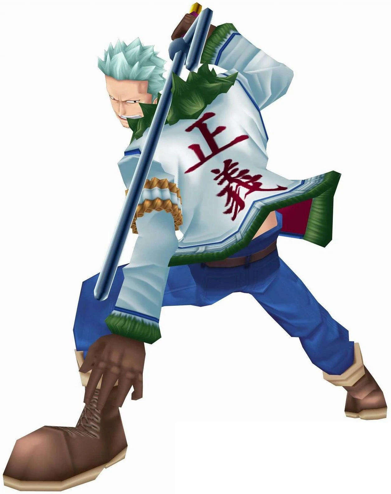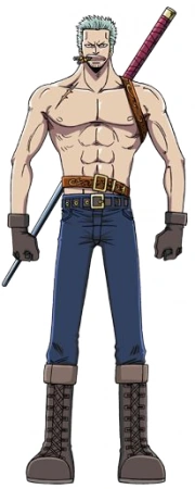 Во время его пребывания на неизвестном острове в Гранд Лайн, офицера показали без пиджака. В течение этого времени, он носил дзюттэ привязанным к спине несколькими ремнями. Также заметен шрам на правой стороне груди [4].