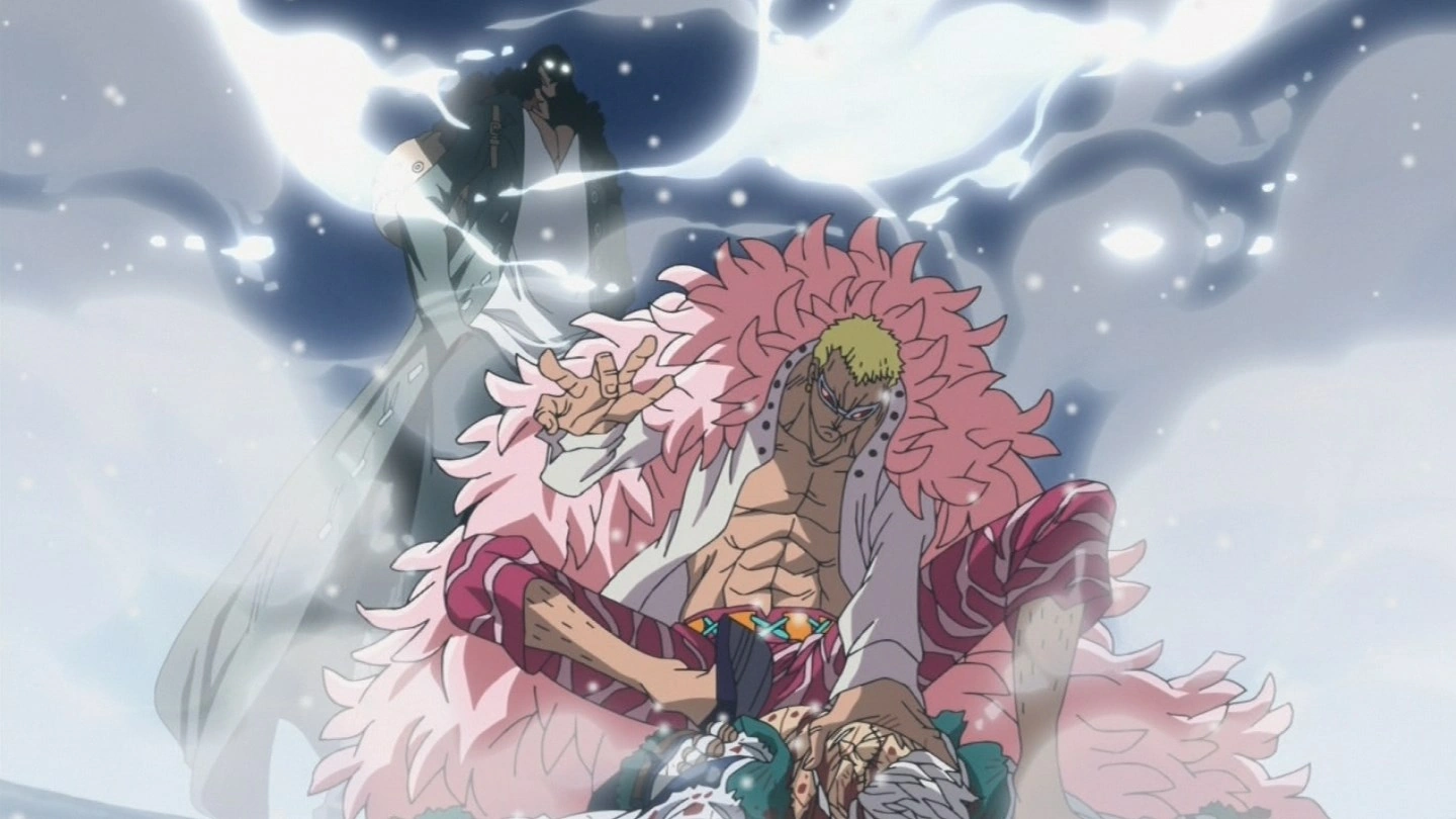 Когда Дофламинго прибыл на Панк Хазард в поисках Ло и Мугивар, он напал на дозорных. Он потребовал у Смокера рассказать, куда направились пираты, но тот отказался говорить. После этого Дофламинго напал на него и чуть не убил, отступив после появления Аокидзи.[41]