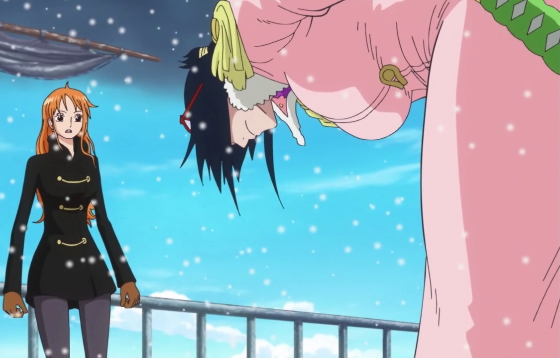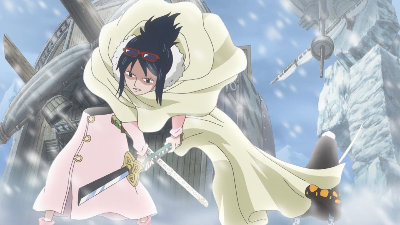 После того, как прибывает Шанкс, она прекращает бой, как и другие Морские Дозорные.