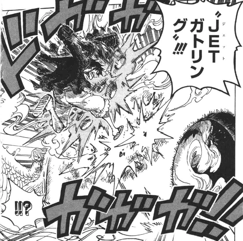 Глава 681, страница 11. Исправление: Добавлен черный цвет на руке Луффи из-за Хаки Вооружения. |