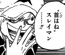 Глава 753, страницаница 4. Исправление: Атака Сулеймана "Kubi kiri" (首切り; досл. "Шеерез") на "Kubi hane" (首はね; дословно, "Обезглавлеватель") |
