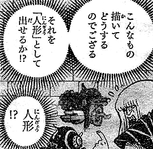 Глава 758, страница 15. Изменение: 「こんなもの描いてどうする」(дословно: почему нарисовал это; может быть прочитана как "почему я нарисовал это", "почему ты нарисовал это", "почему он нарисовал это" и т.д.) на「こんなもの描かせてどうする」(досл. "зачем ты заставил меня нарисовать это") Исправление: Изменение пунктуации (!?) |