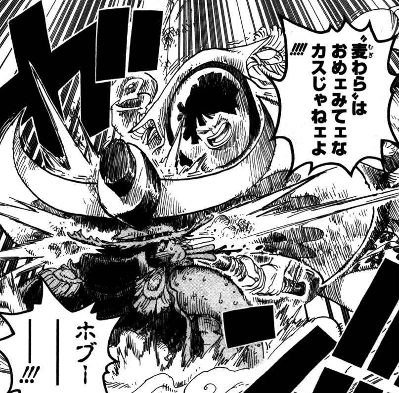 Глава 599 и Эпизод 518, Луффи "вырубает" самозванцев Королевской Волей.