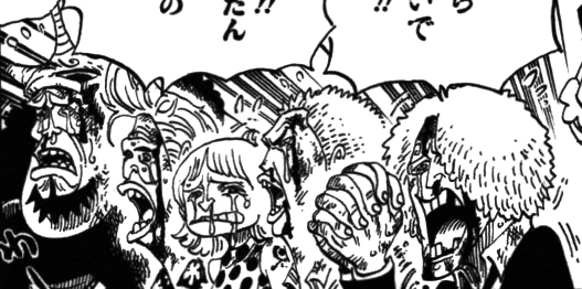 - Чоппер из-за соей наивности поверил Фальшивым Мугиварам. Усоппа не обманули, хотя он был шокирован, столкнувшись с Согекингом, со своим собственным альтер-эго. Луффи. встретив Мандзяро и Дрипа, подумал, что перед ним замаскированные Санджи и Зоро, хотя он задал им вопрос об этой маскировке.