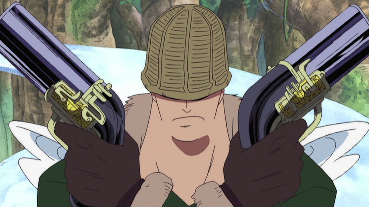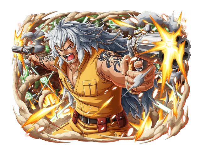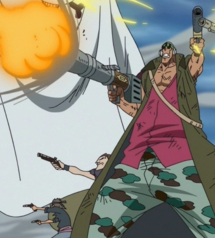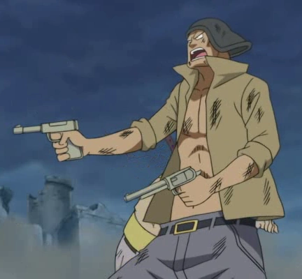 Кремневый револьвер шестизарядный .44 калибра (フリントロック式44口径6連発リボルバー,Furintorokku Shiki Yonjūyon Kōkei Rokurenpatsu Riborubā?): Новая модель с Саут Блю, скорострельная, рассчитанная на 6 выстрелов. Использовалась Мистером 5, пополняя запас боеприпасов с помощью силы своего плода, Бому Бому но Ми.[2]