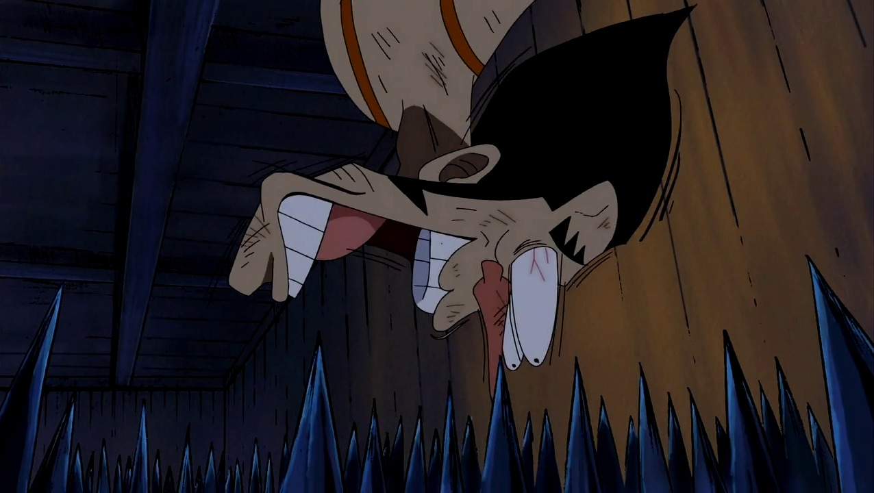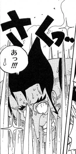Глава 315, Фокси неудачно приземляется на шипы предназначенные для Луффи.