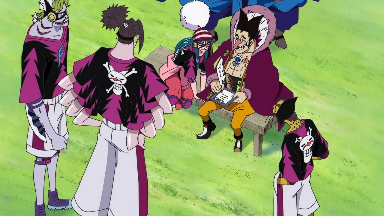 После церемонии открытия Дэви Бэк Файт в которой Фокси отдает дань уважения Дэви Джонсу, капитан скрытно смотрит, кого из Пиратов Соломенной Шляпы он хочет заполучить.