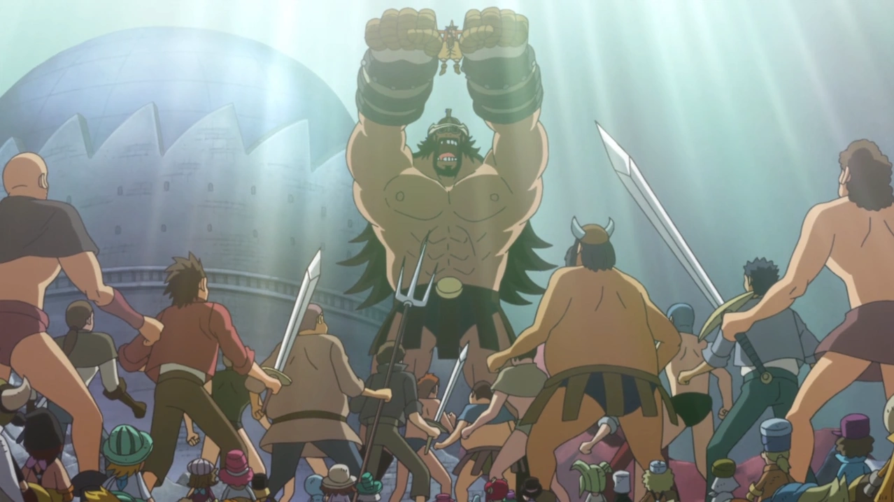 Хайрудин поднимает Усоппа над бывшими игрушками.