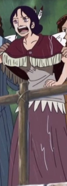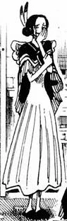 Она была среднего размера женщиной, с черными волосами связанными в пучок за спиной, с декоративными перьями в них, а также с двумя свисающими нитями. Она была одета в серую рубашку, с белыми оборками внизу, и длиной красновато-коричневой юбкой, которая доходила до лодыжек. За её рубашкой она носила маленький темно-красный плащ, без рукавов, накинутый на её плечи и застегнутый на одну кнопку и с белой бахромой.