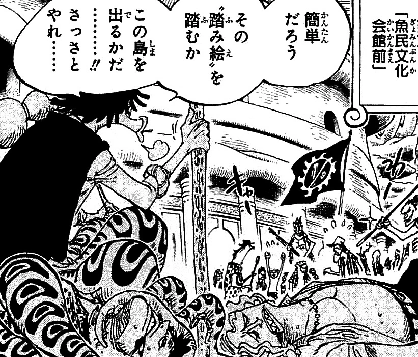 Глава 639 (стр. 18-19) и Эпизод 560, Изменение поведения Хёзо отмечается членами Новых Пиратов Рыболюдей.
