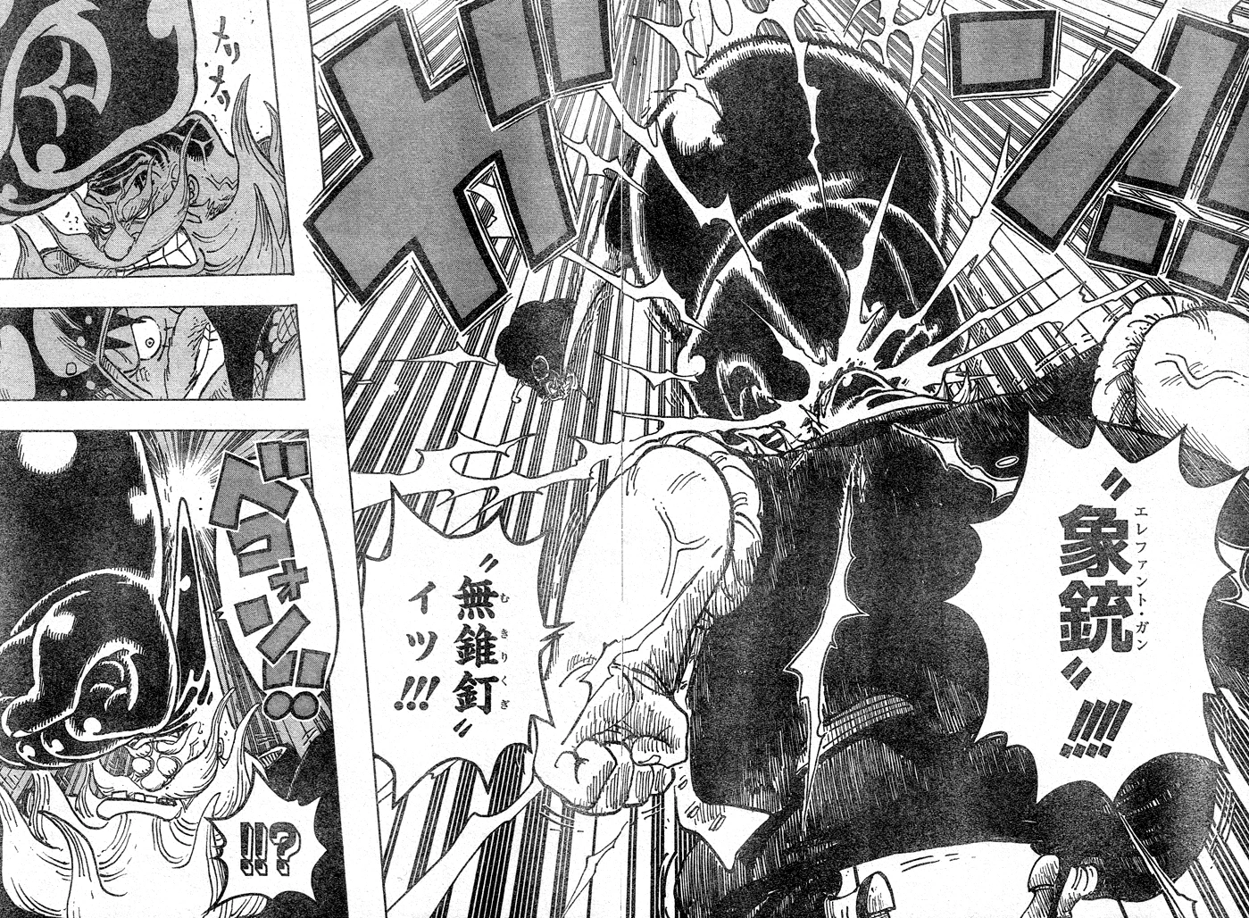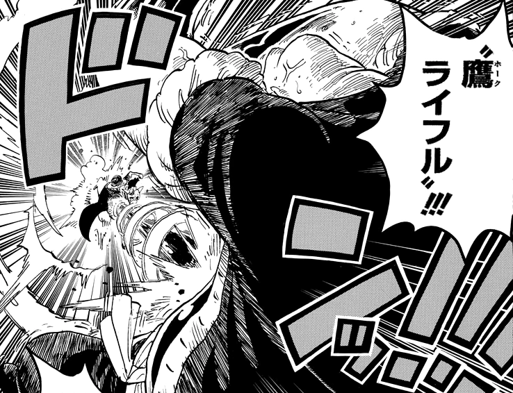 Луффи использует Гому Гому но Винтовку-ястреб против Цинцзяо.