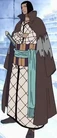 Он носит длинную светло-зеленую тунику, открывающую грудь. Также он надевает два пояса, обматывая их вокруг талии: большой бледно-розовый, а на нем фиолетовый, чуть тоньше. На шее у него висит ожерелье из золотых шаров, а на плечи накинуто пальто служащая ему в качестве накидки. Он носит массивный меч с синей рукоятью на правом бедре.