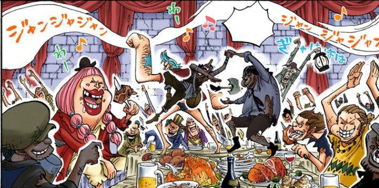 В залитых солнцем руинах Триллер Барка, Лола и все остальные устроили вечеринку, которая сопровождалась игрой Брука на пианино. Все они были счастливы, празднуя победу Пиратов Соломенной Шляпы над Морией [38].