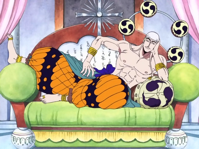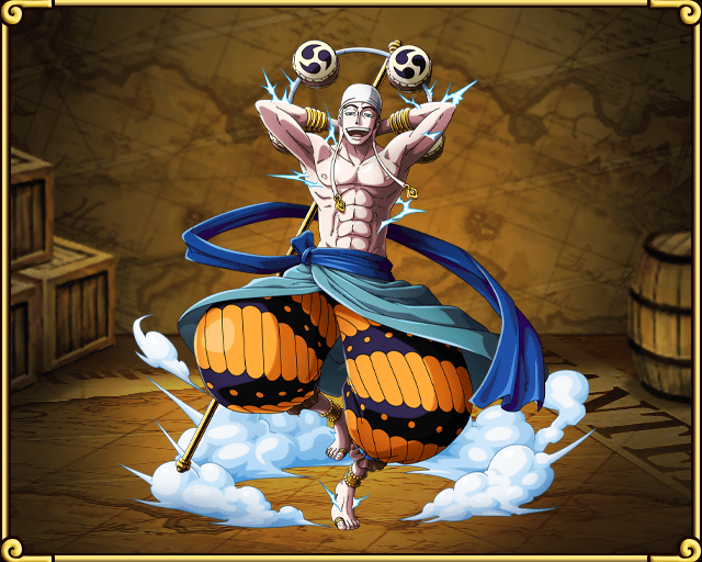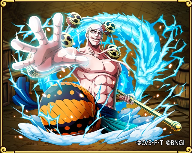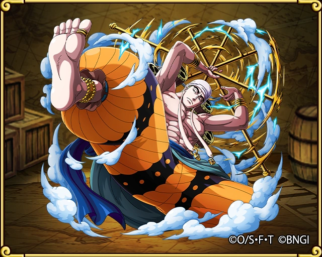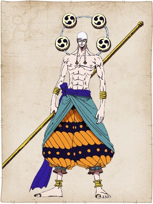 «Бог» Энель бывший «бог» Скайпии[1]. Он являлся главным антагонистом в арке Скайпии, также выступающий в качестве основного антагониста в Саге Небесного Острова. Два года назад, после поражения от Команды Соломенной Шляпы, он прибыл на Луну, где стал новым правителем.