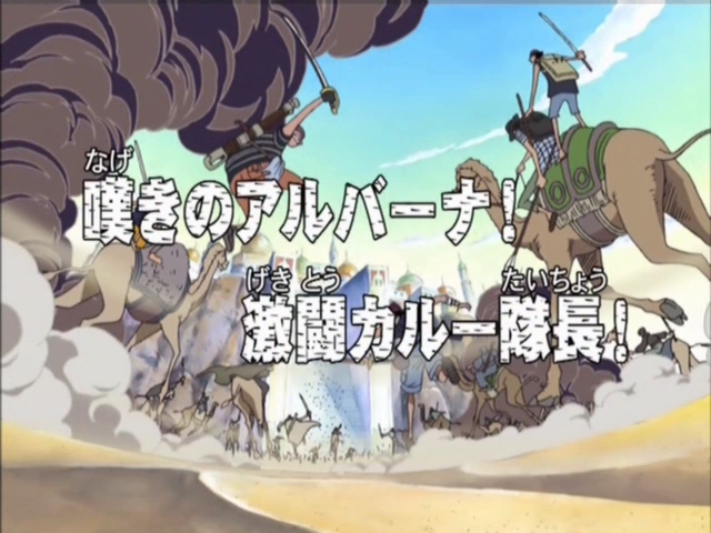«Плач Алубарны! Жестокий бой капитана Каруэ!» — 113 эпизод аниме One Piece. Дата не указана.
