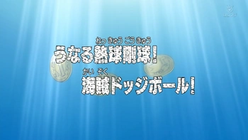 Начинается вторая игра в три монеты. Объявляется список предстоящих игр: игра с мячом, команда на команду и бой один на один. Начинается первый раунд - игра с мячом под названием Пиратские вышибалы. Итомимидзу объявляет основные правила игры и отдает книгу с ними Робин. Команды построились, и игра началась. Из каждой команды были выбраны двое участников для спорного броска. Со стороны Пиратов Фокси: Дзюбе и Гирарин. Со стороны команды Пиратов Соломенной Шляпы: Луффи и Чоппер. Перед тем как выйти к игрокам Чоппер съел Рамбл Болл и использовал форму Jumping Point. Судья свистит в свисток. Игра началась, и мячи были подброшены в воздух. Луффи и Чоппер синхронно прыгают за ними, тем самым избегая атаки Дзюбе и Гирарина. Поймав мячи, они целятся в Фокси и попадают ему прямо в лицо. Согласно правилам игры, лицо является безопасной зоной, поэтому Фокси остается в игре. Нами подбирает упавшие мечи и передает их Зоро и Санджи. Зоро и Санджи кидают мячи, и каждый попадает сразу в девять игроков. Чикичита пытается подобрать мечи, но его опережает Робин благодаря своему дьявольскому плоду Хана Хана но Ми и передает их Луффи и Чопперу. В свою очередь Луффи, используя свой прием Gomu Gomu no Pachinko, выбивает 10 игроков одновременно. Чоппер меняет свою форму на Arm Point и кидает мяч. Он попал в несколько человек, но их успел поймать Гамбург и не дал вылететь за пределы поля. Подобрав мяч, который кинули Луффи и Чоппер, Пираты Фокси наконец-то могут атаковать. Гамбург передает мячи Биг Пану, и тот их кидает. Мяч полетел прямо в Усоппа, выбивая его и 22 пирата Фокси.