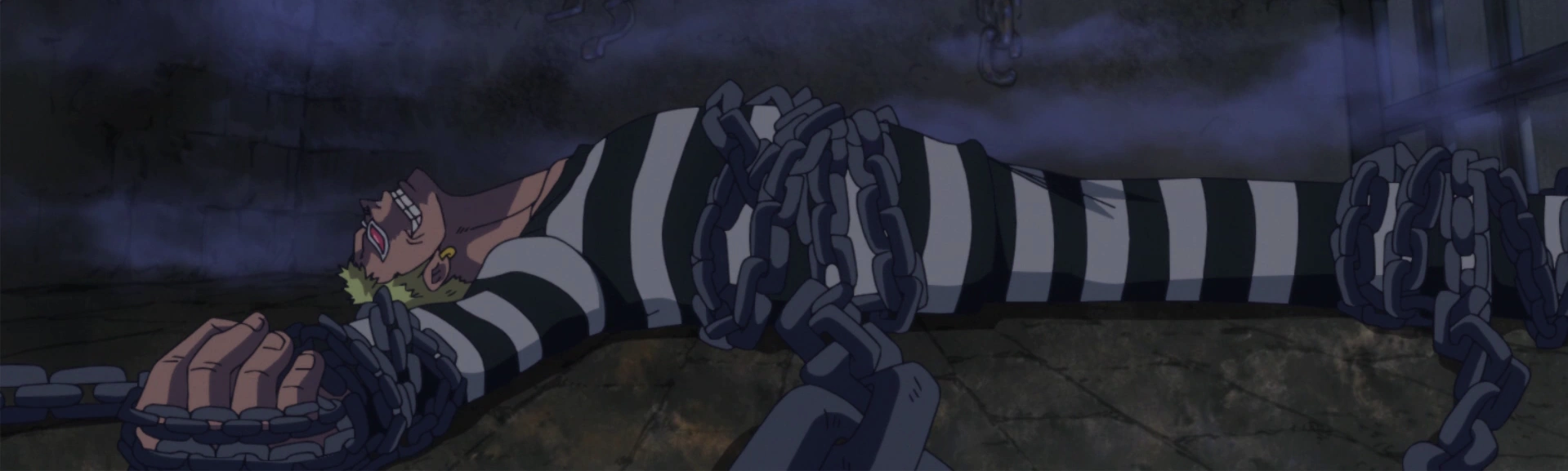 связанный и заключенный в тюрьму Донкихот Дофламинго говорит Цуру, что Фудзитора должен был сотрудничать с ним, и тогда все оставалось бы упорядоченным. Тем не менее, Цуру говорит ему принять поражение, но спрашивает, что может случится в будущем. Дофламинг говорит, что спустя 25 лет после смерти Гол Д. Роджера был создан вакуум власти, так как несколько групп будут бороться за трон и править по всему миру. Дофламинго задается вопросом, кто выйдет победителем, и начинает трясти свои цепи, он задается вопросом, когда семья «Д.» будет демонстрировать свою силу. Некоторые морские дозорные спешат, чтобы подавить деятельность Дофламинго, но Цуру останавливает их. Молния ударяет по одному из морских кораблей, за ними наблюдают пираты Джека которые находятся поблизости. Пираты предупреждают капитану Джеку, что вернуть Дофламинго невозможно. Однако Джек по-прежнему намерен осуществить спасение.
