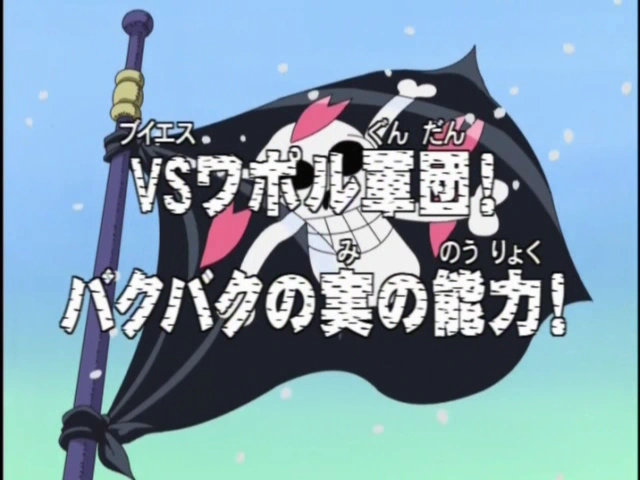 «Против армейского корпуса Вапола! Сила плода «Баку-Баку»!» — 87 эпизод аниме One Piece. Дата не указана.