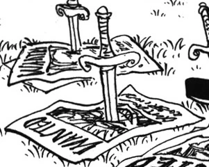 Глава 594 (стр. 11-13) и Эпизод 511, Кид, находясь в Новом Мире, читает новости о Луффи.