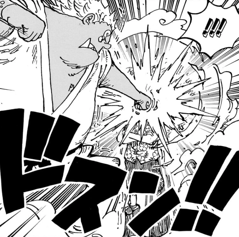 Глава 1078 (стр. 7) и Эпизод 1111, S-Shark ударил Санджи.