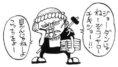 Д: Ода-сэнсэй, недавно ко мне пришёл мой лучший друг и сказал: "Я нашёл для тебя идеальный Дьявольский плод", поэтому я пошёл и съел его. И теперь, может мне это и кажется, но меня не покидает чувство того, что все мои шутки не смешные.