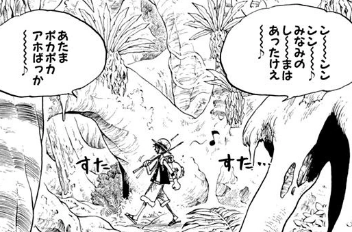 Mangada, Luffy'nin çocuksu doğasını yansıtmak için, sözler yalnızca hiragana ile tasvir edilmiştir, hatta One Piece kelimeleri genellikle daha sofistike kanji sistemiyle hecelenir.