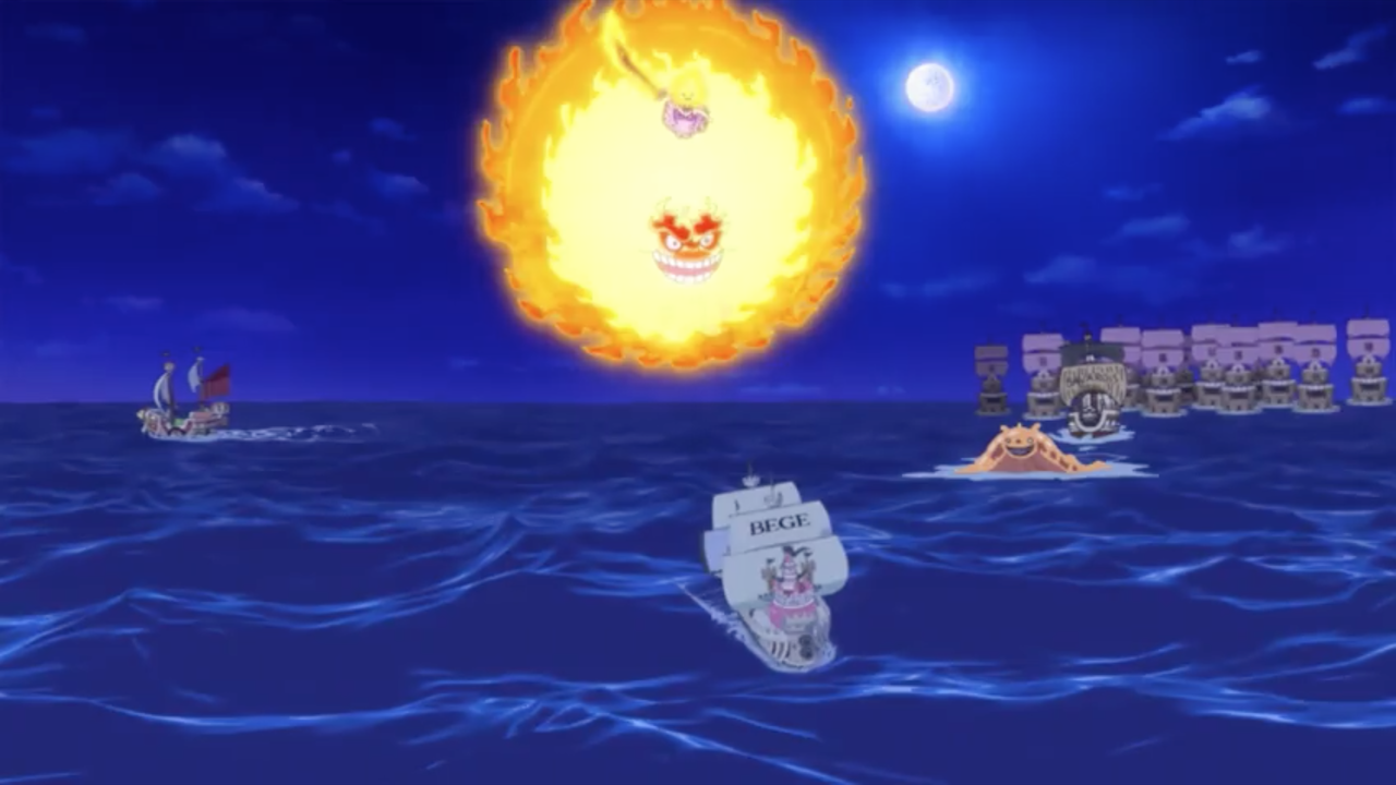 - ↑ One Piece Manga and Anime — Vol. 87 Chapter 876 (p. 2-5, 14-16) and Episodes 847–848, Big Mom recovers from the attack while her sons attack the Sunny.