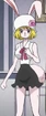 At the meeting with the Fire Tank Pirates, she wore a flapper-style outfit of a white cloche hat with a pink rose, a sleeveless white blouse with a frilly collar and pink ribbon, a frilly black skirt, and black pumps.[15] Her outfit had different colors (yellow blouse, red skirt, and orange pumps) in the original "Hope" opening.
