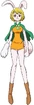 After reaching Totto Land, Carrot donned a simple, light-green short-skirt dress decorated with three vertical stripes running down the center and frills at the bottom, neck, and sleeves, and tied up at the front with an orange bow, as well as a pair of orange dress shoes.[14] An additional accessory includes an orange hat.