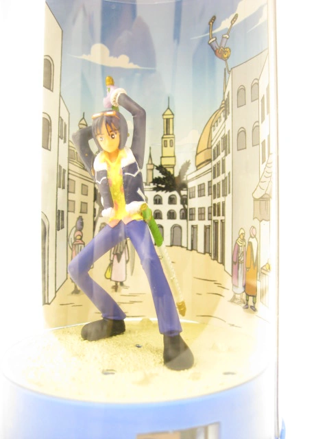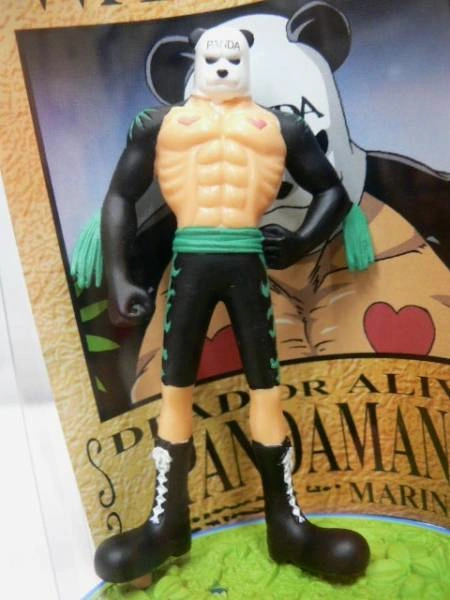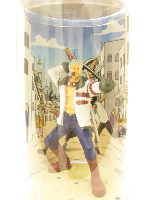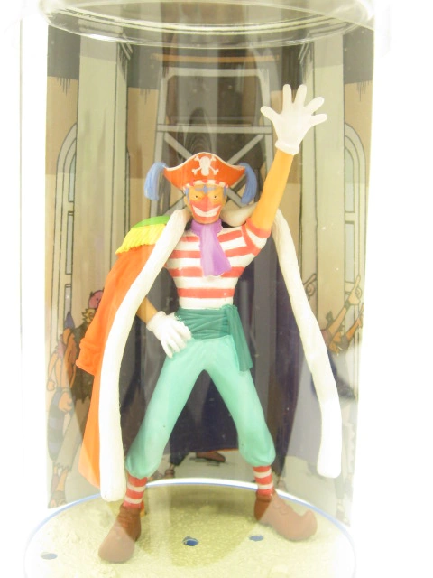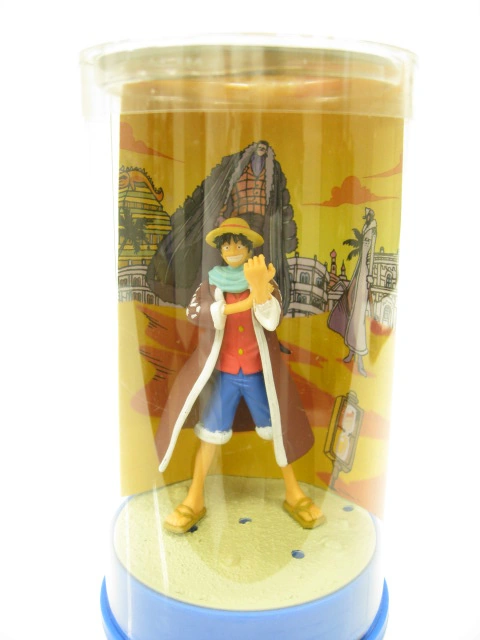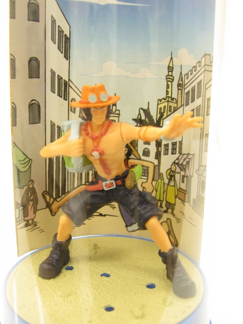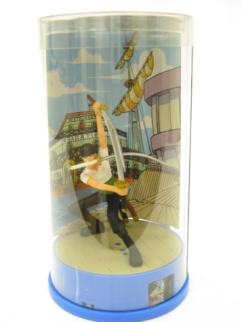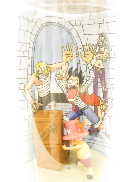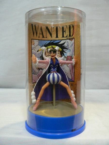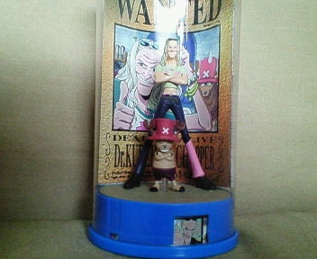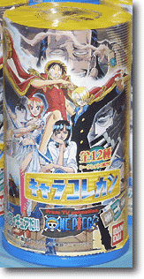CharaColleCan From TV Animation One Piece is a series from Bandai where a 14 cm tall figure is placed inside a plastic can showing a wanted poster of the contained character. The base of the can can rotate to let the figure be seen at every angles. At a side of the base, there is a little window from where several pictures taken from the anime are showed during base rotation. Each can were sold at ¥399.