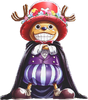 Chopper takes a piece of paper out of his hat, looking at a picture of Hiriluk's pirate flag. Chopper stands up to Battler, telling Battler that he will not forgive him, but Battler laughs it off. Chopper shifts to Heavy Point, then eats a Rumble Ball and begins battle with Battler. As Battler takes several hard swings at Chopper, Chopper shifts into Jumping Point and avoids them all. When he is struck, Chopper shifts to Guard Point, not taking a scratch. He then switches to Arm Point and uses Kokutei Roseo, striking Battler between the eyes. Battler is unaffected and slams Chopper to the ground, who returns to Brain Point.