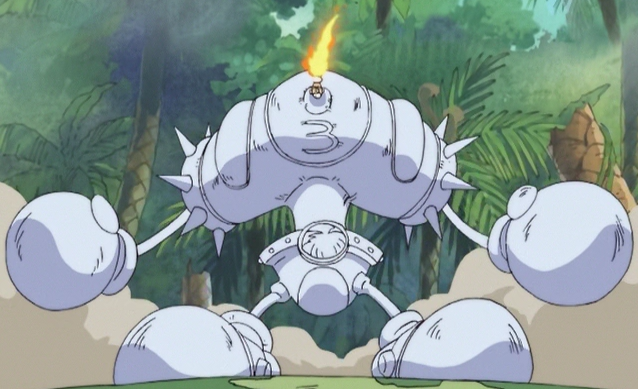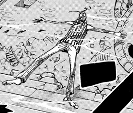 ↑ 5.05.1One Piece Manga and Anime — Vol. 19Chapter 176 (p. 3) and Episode 109, Mr. 3 emerges alive from being eaten by a Bananawani through the use of the Doru Doru Ball.