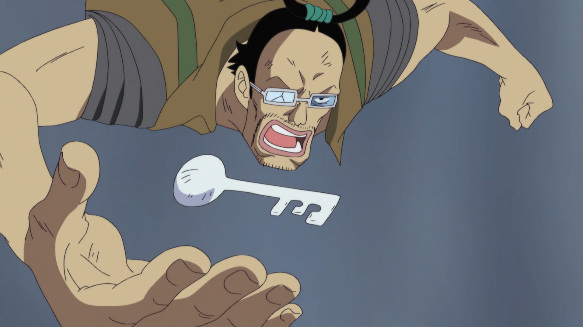 ↑One Piece Manga and Anime — Vol. 58Chapter 571 (p. 14-15) and Episode 480, Galdino reproduces the key to Ace's Seastone cuffs.