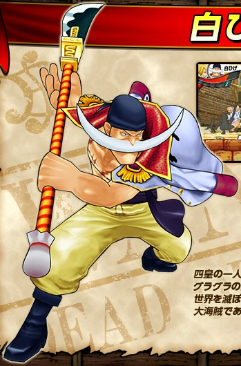 Edward Newgate,[12] more commonly known as "Whitebeard", was the captain of the Whitebeard Pirates and was widely known as the "Strongest Man in the World" and, after Gol D. Roger's death, the "Man Closest to One Piece".[7]