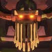 Emet is a robot around as tall as the Ancient Giants. It wears a horned helmet, and its face and lower body are covered by grills with vertical bars. The left horn on its helmet broke off over two hundred years ago, and remains missing. During the battle against the Five Elders, Shepherd Ju Peter bit off its left arm and a portion of the respective shoulder.