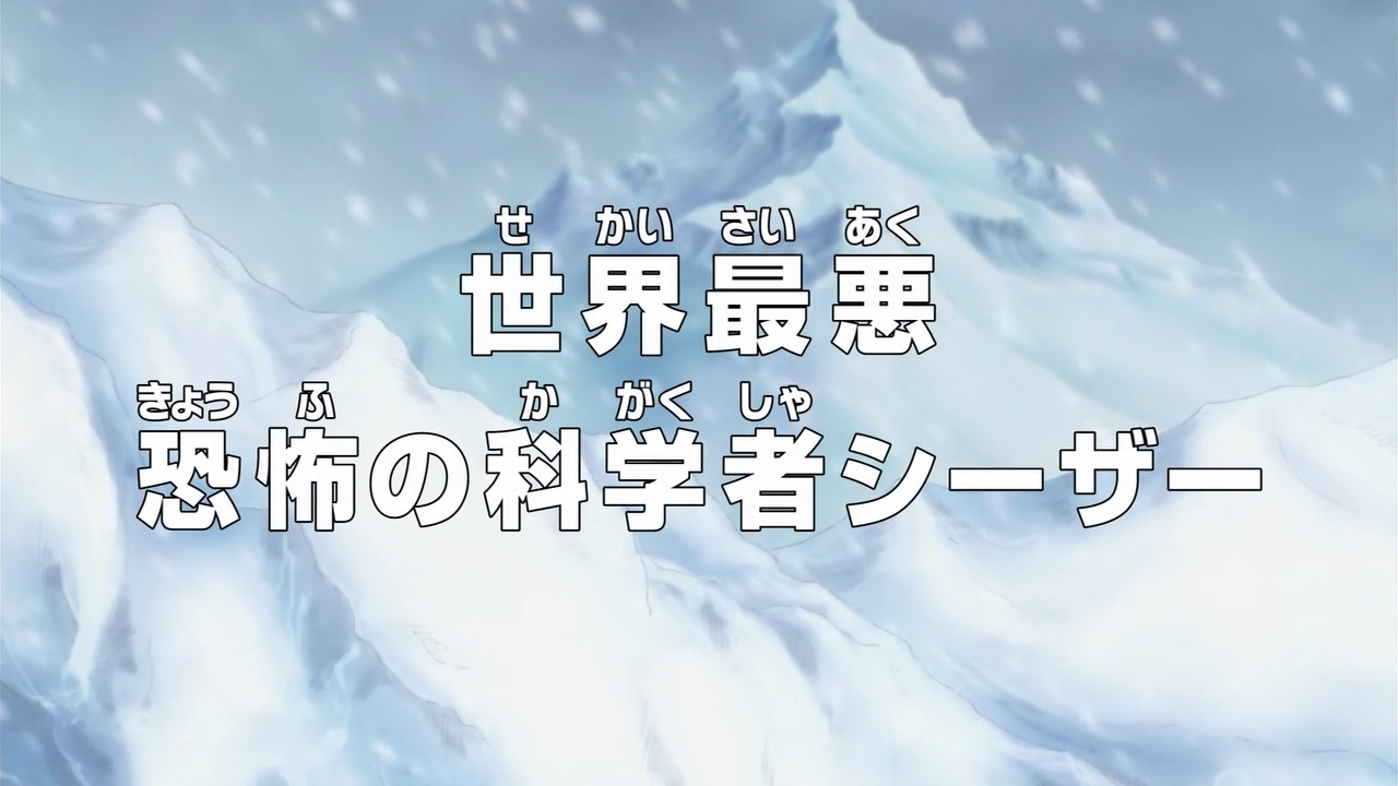 "Worst of the World - The Scary Scientist Caesar" is the 589th episode of the One Piece anime.