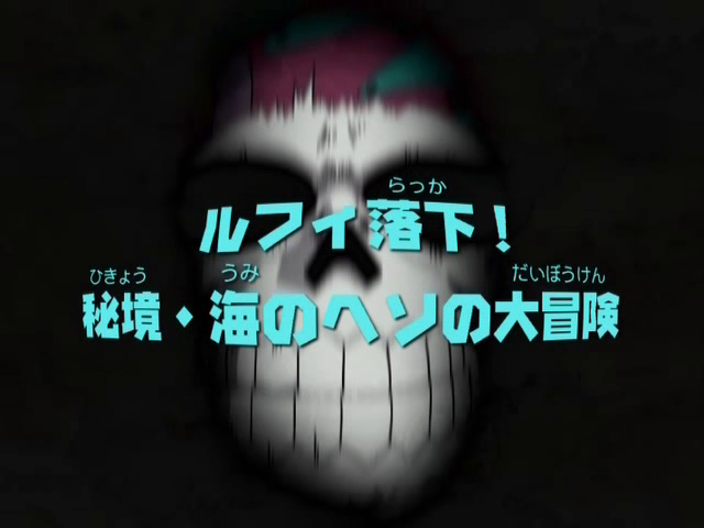 Luffy is disappointed that it wasn't something to eat, but Nami is more interested in finding out what's inside the chest. She opens it only to find a skull inside. Usopp reads the back of the skull, which has an engraving about a treasure that can make anyone's dream come true. It lies deep in the ocean's naval. Then a large hole begins to form near the crater they crashed into, so Usopp, Nami, and Sanji prepare themselves in a diving barrel to explore the cavity in the sea. Luffy is put in charge of the rope crank.
