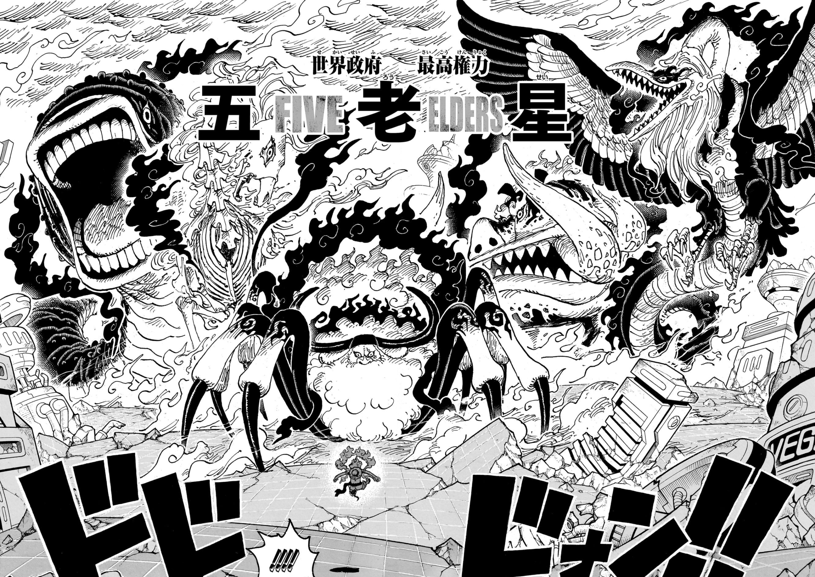 Saturn summons the other four Elders to Egghead, all the way from Mary Geoise.