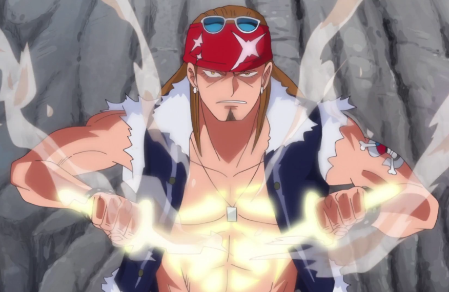 By eating ore, Bill can send it into a blast furnace inside his body, which will make his body glow orange and exude steam.[1] He brings out the ore to use for whatever fits the situation, such as weapons for when he is attacking. He also sometimes attacks with molten ore. Additionally, he uses his fruit to also increase the military strength of his entire crew, giving all of them weapons,[2] ranging from blades to functioning firearms.[4] Being situated in the Silver Mine, Bill has a huge supply of ore to feed his furnace. However, while Bill can create weapons even in the midst of battle, he shows no proficiency in using them.[4]
