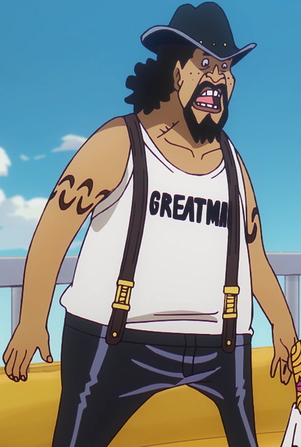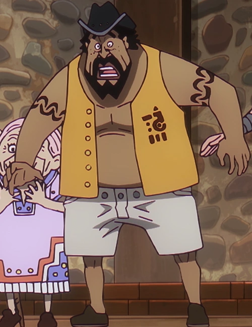 Gyogyo[4] is a member of the Bonney Pirates. He was once a resident of the Sorbet Kingdom, having been a friend of Bartholomew Kuma and Ginny since childhood.