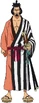 His attire consists of a samurai gi that is black and white striped on the left side and orange on the right. Kept on the left side of his torso is a pair of katana with identical flame-patterned sheaths. For footwear, he wears simple geta sandals.[10]