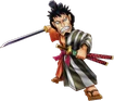 Indeed, when they met again for the raid on Onigashima, Kin'emon was surprised to see Denjiro again once the latter discarded his guise as Kyoshiro. Denjiro took advantage of Orochi's trust and joined Kin'emon after freeing the imprisoned rebels in the Flower Capital. Denjiro blindly looks up to Kin'emon and admires his craftiness and leadership skills to the point of not realizing that those tend to be a result of Kin'emon's dumb luck.[44][45]