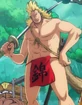 Kin'emon has a tendency to be quite perverted in spite of his sexist ideals. Though he seemed to be outraged at Nami's sense of fashion, he still greatly enjoyed ogling at her cleavage[28] and has used his own Fuku Fuku no Mi to manifest revealing outfits for her to wear.[29] He showed his anger and jealousy at Momonosuke bathing with Robin and sleeping in the same bed with the women of the Straw Hat Pirates.[27]