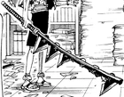 By the time he reached East Blue, the saw was no longer Arlong's main weapon of choice, but would continue to serve against opponents he would face seriously. He kept his prized blade on the wall within the armory room of Arlong Park alongside other katanas, until he pulled it out during his duel against Monkey D. Luffy.[1] Four of its blades were damaged by Luffy during their battle inside the chart room of Arlong Park.[5]