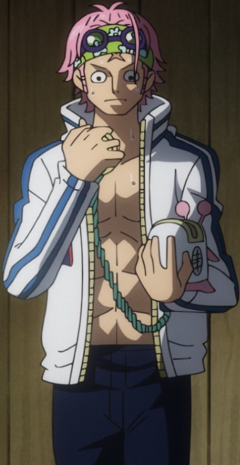 Due to the passage of time and Garp's training, Koby has grown thinner and taller, standing close to Luffy in height. He has also gained a cross-shaped scar above his right eye, presumably earned under Garp's heavy-handed tutelage. His hair has grown longer and shaggier since his growth spurt, but it has retained its kobi pink color.
