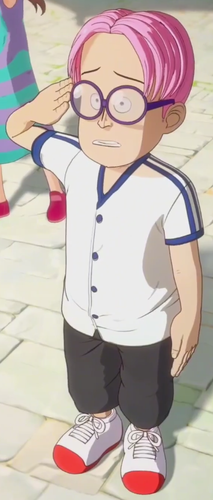 In his first appearance, Koby was a small, timid, chubby boy with kobi pink hair and round-frame glasses.[1]