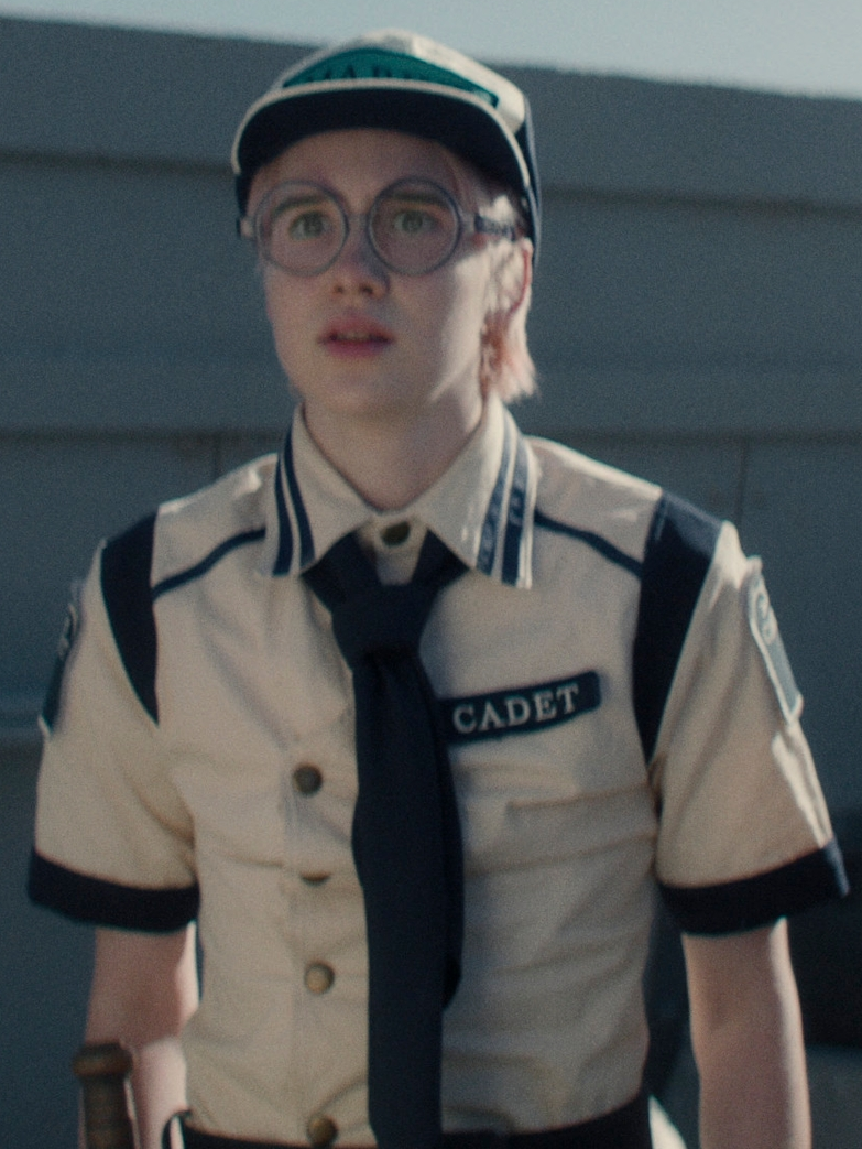 Koby wears a standard-issue Marine jacket, pants, and neckerchief as well as a brightly patterned bandanna worn tied across his forehead. Koby's glasses are still present, but he has adopted the habit of wearing them pushed up on his forehead, occasionally using them for reading.